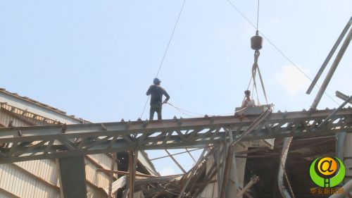 在已經(jīng)歪歪斜斜的噴霧干燥塔旁,記者看到四周到處散落著被臺(tái)風(fēng)吹下的鋼板和支架。工人們有的操作吊裝車,有的進(jìn)行高空作業(yè),他們抓緊時(shí)間拆除干燥塔及周邊配套的設(shè)備。企業(yè)負(fù)責(zé)人告訴我們,噴霧干燥塔是生產(chǎn)環(huán)節(jié)中的核心設(shè)備,它的癱瘓直接導(dǎo)致企業(yè)停產(chǎn)。目前這座干燥塔的拆除和重建需花費(fèi)350萬元。