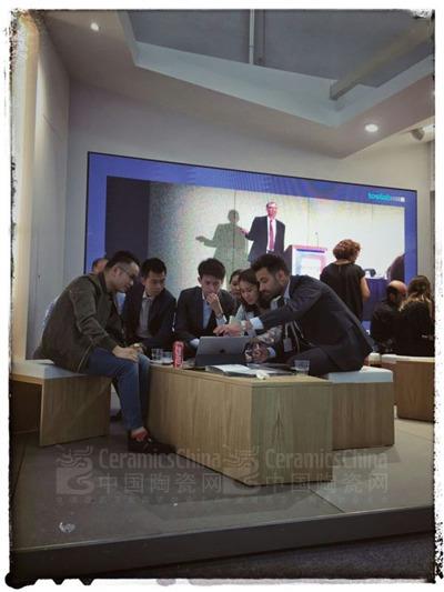 歐雅代表團(tuán)在觀展期間,被西班牙PORCELANOSA(寶路莎)瓷磚其獨(dú)特的風(fēng)格,產(chǎn)品品質(zhì)、工藝、展示設(shè)計(jì)所吸引,紛紛圍坐在一起聆聽其參展商的詳細(xì)介紹。