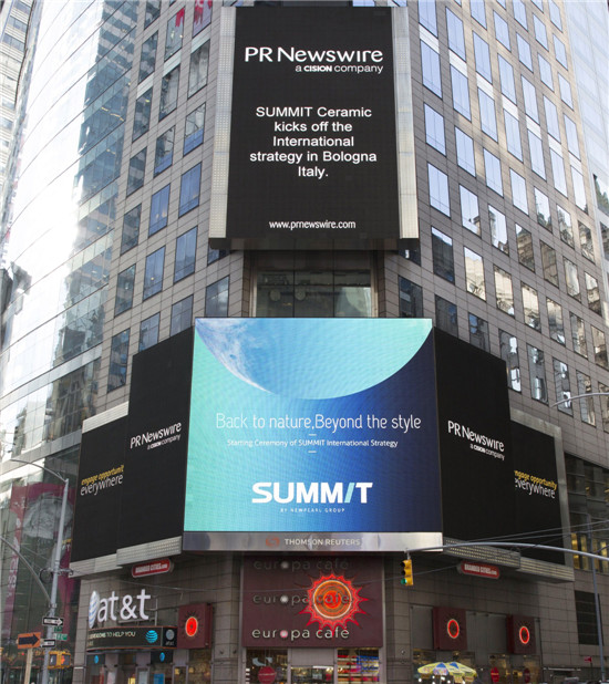 意大利時(shí)間9月28日,薩米特在博洛尼亞啟動(dòng)品牌國(guó)際化戰(zhàn)略,向全世界發(fā)出中國(guó)“智“造的最強(qiáng)音。作為薩米特全球戰(zhàn)略發(fā)展的部署,薩米特再次榮耀亮相美國(guó)紐約時(shí)代廣場(chǎng),以中國(guó)優(yōu)秀民族品牌身份閃耀亮相美國(guó)紐約時(shí)代廣場(chǎng),引世界聚焦,領(lǐng)跑建陶行業(yè)自主品牌,注重品牌自主創(chuàng)新,一直堅(jiān)持中國(guó)智造之路。