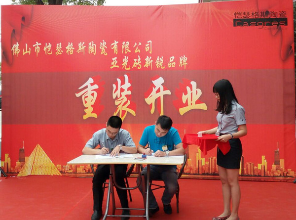 10月17日,佛山市愷瑟格斯陶瓷展廳重裝開業(yè)典禮,在紫洞南路11號總部特區(qū)E6棟舉行。愷瑟格斯董事長鄭玄日、營銷總經(jīng)理葉勇兵、設(shè)計總監(jiān)周武,愷瑟格斯陶瓷各地經(jīng)銷商朋友,以及中國陶瓷網(wǎng)等主流媒體參與了本次活動。