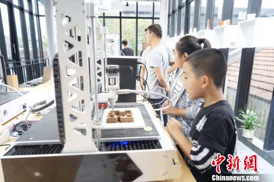 景德鎮(zhèn)陶溪川文創(chuàng)街區(qū),3D陶瓷打印體驗中心吸引了很多學(xué)生參觀!∠奈暮馈z