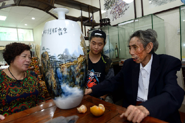 圖一:謝高華在細(xì)細(xì)品味謝古道的窯變佳品
