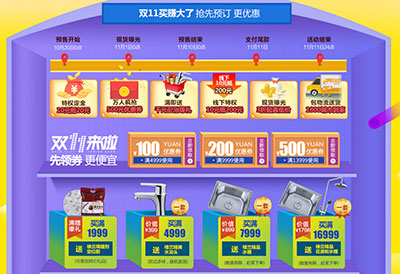 今年的“雙十一”,樓蘭陶瓷天貓旗艦店推出多項(xiàng)優(yōu)惠,從10月20日0點(diǎn)開始提前預(yù)售,讓顧客提前享受優(yōu)惠待遇。“特權(quán)定金10元抵20元”、“100-500元優(yōu)惠券提前搶”,產(chǎn)品價格更優(yōu)惠;“滿額即送千元衛(wèi)浴豪禮”,精品花灑、水槽等五金配件任性送;“滿300元即可超值換購”,以超低的價格換到優(yōu)質(zhì)產(chǎn)品。