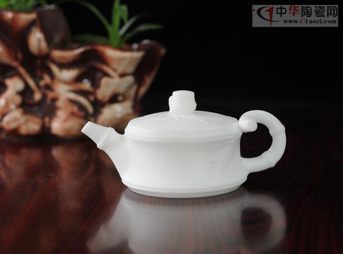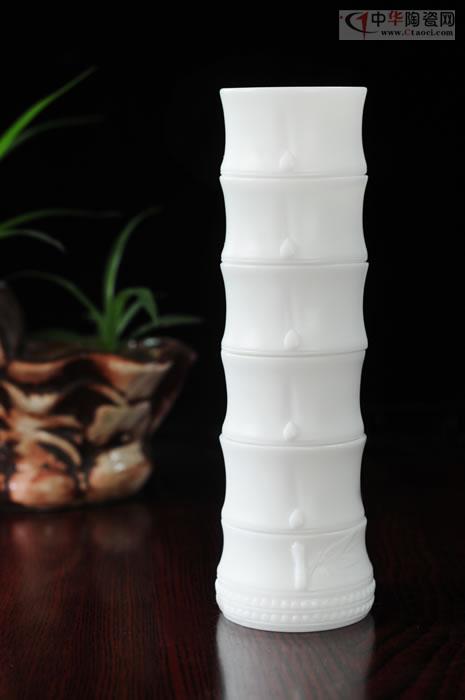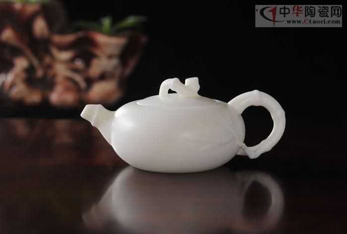 作品采用特級德化白瓷高嶺土,每噸數(shù)萬元。壺身、壺柄宛如竹節(jié),節(jié)節(jié)高升,執(zhí)壺在手,光潤潔白,如脂似玉,作品胎骨潔白,堅(jiān)實(shí)致密,有凝脂似玉之感,迎光透視,色澤光潤明亮,晶瑩剔透,集實(shí)用性、觀賞性、收藏性于一體。作品手刻簽名。