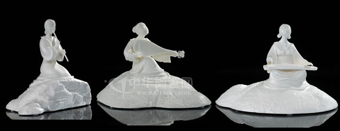 鄭清海師承中國陶瓷藝術(shù)大師蘇獻(xiàn)忠,作品瓷質(zhì)細(xì)膩,工藝精湛。女子神采婀娜、優(yōu)雅,靜坐于巖石,演奏長笛、琵琶、古琴,意境美好。鄭清海手刻簽名,具有較高的收藏價值。