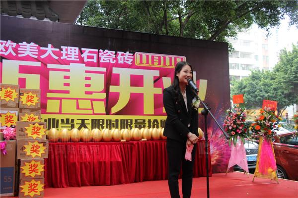緊接著,佛山三水歐美陶瓷旗艦店董事長潘秋萍致辭,她表示三水歐美陶瓷旗艦店現(xiàn)有店面面積200多平方米,主營高檔大理石瓷磚、拋釉磚、板巖、瓷片等,店面團隊不斷強化自身素質(zhì)和服務水平,以誠信經(jīng)營服務客戶為宗旨,竭誠為廣大消費者服務。