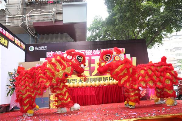 鑼鼓一響,黃金萬兩,獅子點睛,富貴繁榮。歐雅企業(yè)工程事業(yè)中心總經(jīng)理嬈良文、佛山三水歐美陶瓷旗艦店董事長潘秋萍在所有嘉賓的共同見證下共同為瑞獅點睛,隨后吉獅獻瑞采高青增添祥瑞好彩頭,引來觀眾陣陣喝彩,齊賀開業(yè)大吉,精彩的醒獅表演將當天活動的氣氛推向高潮。