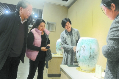 11月16日,市民在觀賞高雅瑰麗的醴陵釉下五彩瓷。當天,“湘之潤·瀟湘情”醴陵釉下五彩瓷名家作品展在湖南省工藝美術館舉行,展出中國陶瓷藝術大師黃小玲和省工藝美術大師易龍華創(chuàng)作的陶瓷藝術精品40件,為市民帶來賞心悅目的藝術享受。