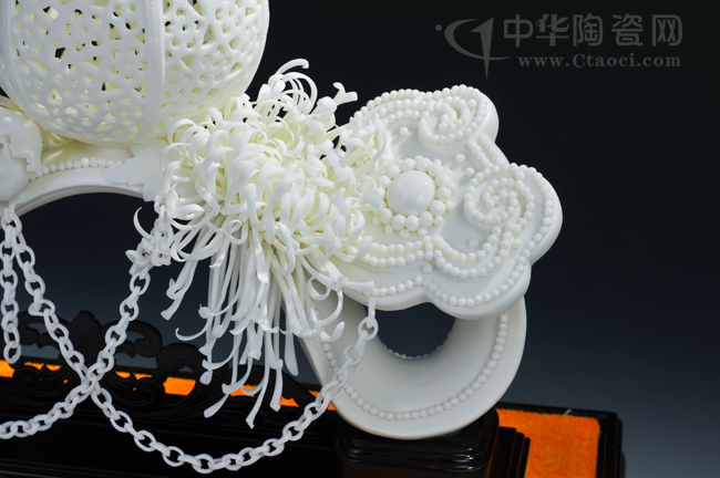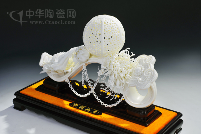 簡介:福建工藝美術(shù)珍品館、德化陶瓷博物館收藏,多次獲金獎,以如意棒為主體,圓球代表圓滿,蘊含著“萬事如意”、“美美滿滿”的美好意象。作品純手工制作,精雕細刻,造型和諧。