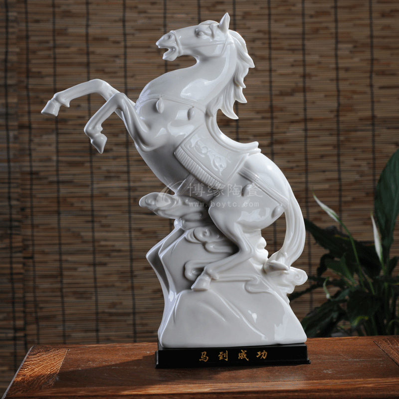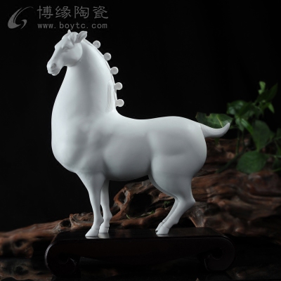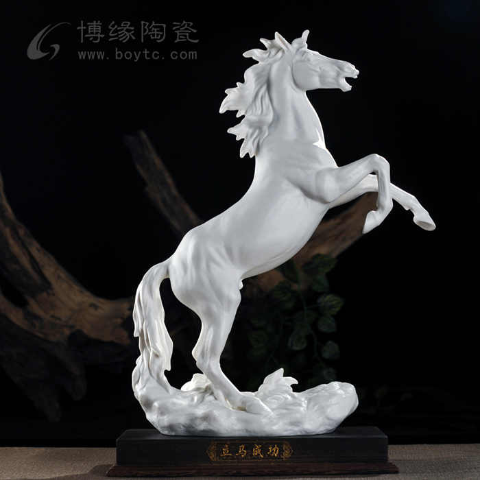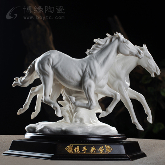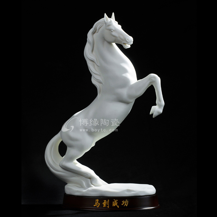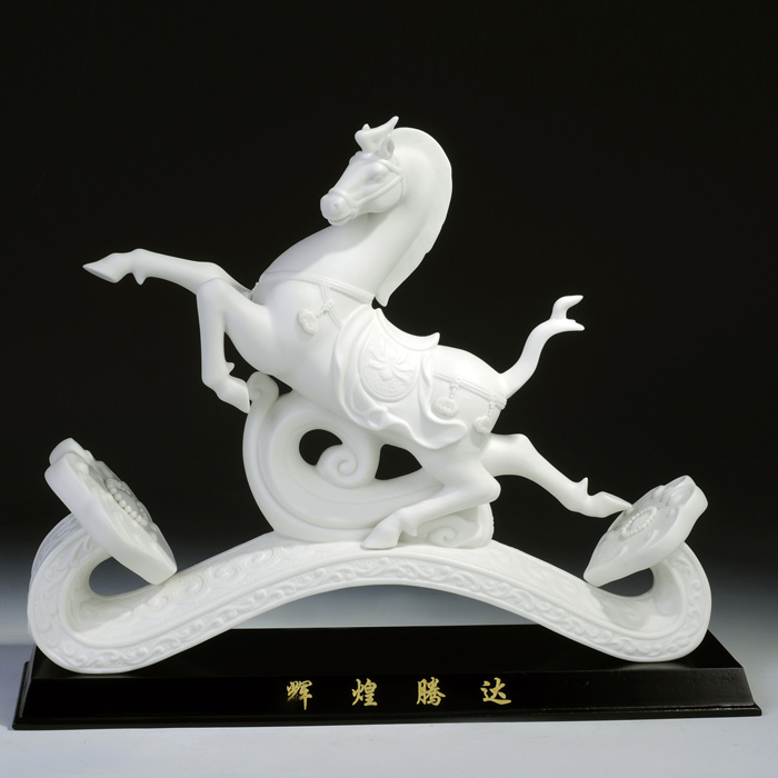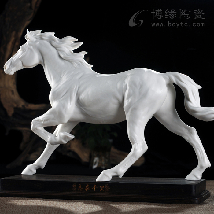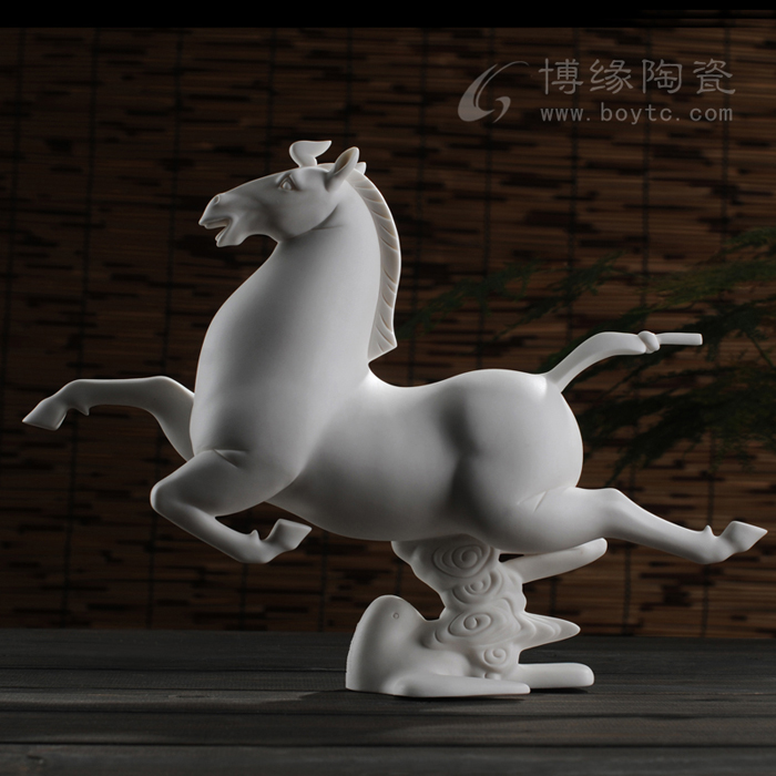 但凡了解瓷塑的人都知道,由于瓷器要經(jīng)過一千多度高溫的燒煉,最高溫時(shí)的瓷胎會(huì)呈現(xiàn)一種熔融狀態(tài),如果胎體重心不穩(wěn),燒煉中極容易變形甚至癱倒成為廢品,因此瓷塑的底部從工藝角度講,應(yīng)該越敦實(shí)越好。尤其對(duì)馬的四條細(xì)長(zhǎng)腿,瓷塑家都會(huì)盡量避免如實(shí)塑造。這樣四蹄飛揚(yáng)的瓷馬----四只翻飛的馬蹄都交代得清清楚楚,站立得穩(wěn)穩(wěn)當(dāng)當(dāng),實(shí)屬難能可貴!