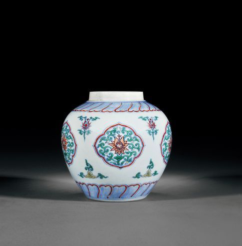 清雍正 仿成化斗彩開光折枝蓮紋罐 成交價:RMB 345,000