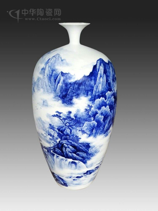 經(jīng)過在實(shí)踐中不斷探索和創(chuàng)新,形成了自己獨(dú)特的藝術(shù)風(fēng)格即"釉下堆雕山水",使作品具有獨(dú)特質(zhì)感效果。