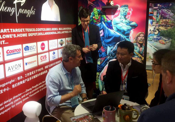 2017年春季廣交會上,順美集團負責人與外來客商洽談。
