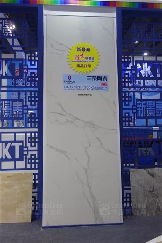 新景泰以“引領(lǐng)陶瓷施釉技術(shù)的工業(yè)4.0”為志業(yè),力推超寬噴墨機,最大打印寬度達(dá)1.8米、單件打印長度達(dá)5米,打印通道多達(dá)10個,F(xiàn)場展出其打印的1200×3600mm噴墨產(chǎn)品,令人駐足。