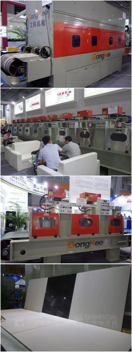 與此同時,工科作為諾貝爾等眾多知名品牌的裝備供應(yīng)商,現(xiàn)場更是展出最小600 ×1200 mm,最大1600× 3200 mm的瓷磚產(chǎn)品。相關(guān)負(fù)責(zé)人表示,石材整線拋光將是企業(yè)未來傾注的重點。