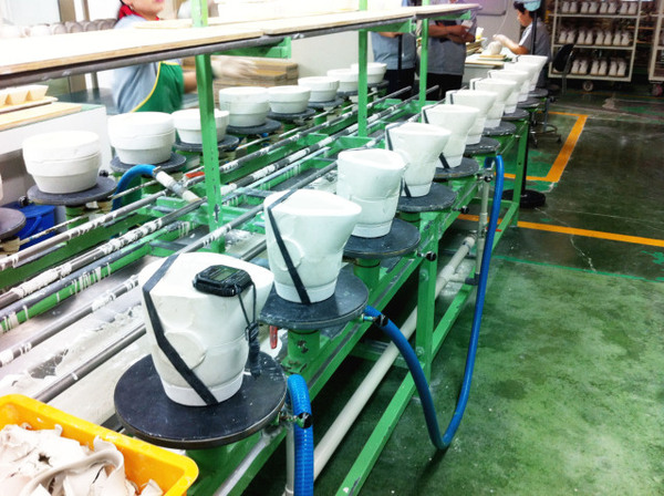 嚴(yán)格控制泥漿的水分和吃漿時(shí)間。攝于2014年某日用瓷工廠生產(chǎn)線