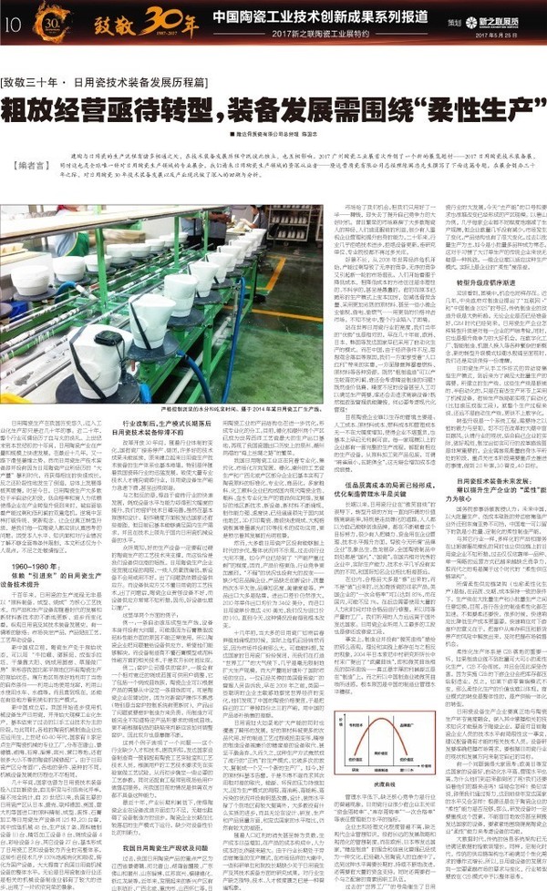 建陶與日用瓷的生產(chǎn)流程有諸多相通之處,在技術(shù)裝備發(fā)展歷程中既彼此獨(dú)立,也互相影響。2017廣州陶瓷工業(yè)展首次開(kāi)創(chuàng)了一個(gè)新的展覽題材——2017日用陶瓷技術(shù)裝備展,同時(shí)這也是全球唯一針對(duì)日用陶瓷生產(chǎn)領(lǐng)域的專(zhuān)業(yè)展會(huì)。我們請(qǐng)來(lái)日用陶瓷生產(chǎn)領(lǐng)域的資深從業(yè)者——隆達(dá)骨質(zhì)瓷有限公司總經(jīng)理陳國(guó)忠先生撰寫(xiě)了下面這篇專(zhuān)題,在展會(huì)創(chuàng)辦三十年之際,對(duì)日用陶瓷30年技術(shù)裝備發(fā)展以及產(chǎn)業(yè)現(xiàn)況做了深入的回溯與分析。
