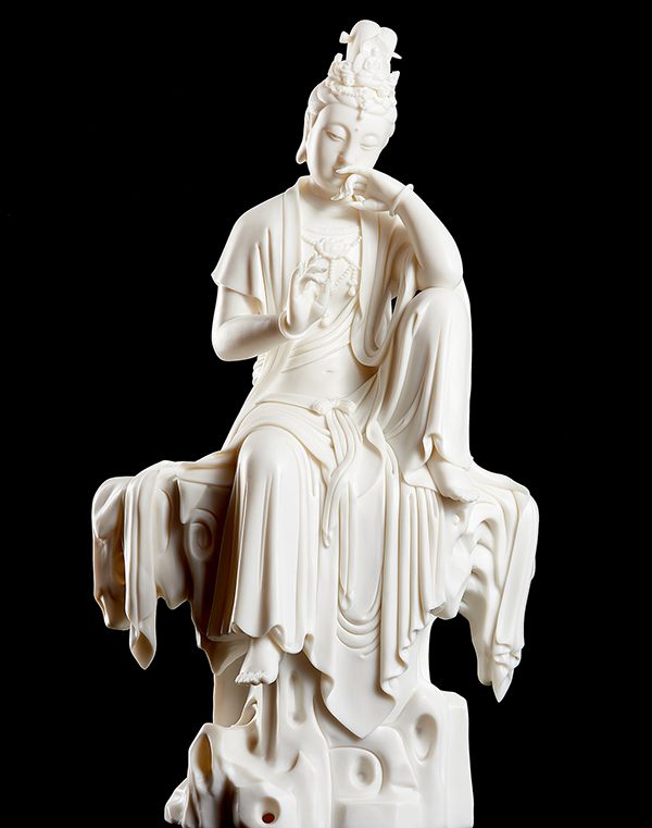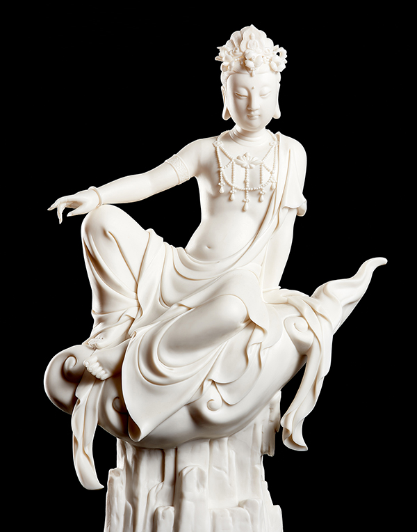 陳金通瓷塑的三十三態(tài)觀音相,采用了世界陶瓷之都·德化獨有的天然原礦瓷土為原料,歷經(jīng)雕、刻、塑、手捏等七十二道工藝手法精心制作而成,其作品采用無施釉高溫澆制而成,產(chǎn)品瓷質(zhì)堅密瑩厚而細(xì)膩、油脂感強、潤度高透亮、玉質(zhì)感十足,手感滑膩厚重,品相高雅。