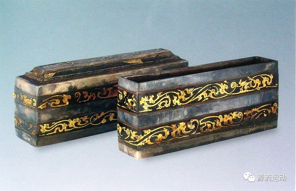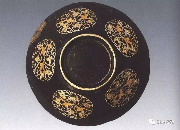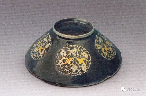 金銀平脫技術(shù)常用于漆器、銅器,極少見于瓷器。其具體做法是將金銀箔片貼于器物之上,然后髹漆數(shù)層,待干后研磨,把金銀片上的漆層磨掉,使之顯露出來(lái)。金銀色亮,漆面色暗,這樣的對(duì)比便形成了色彩的張力。