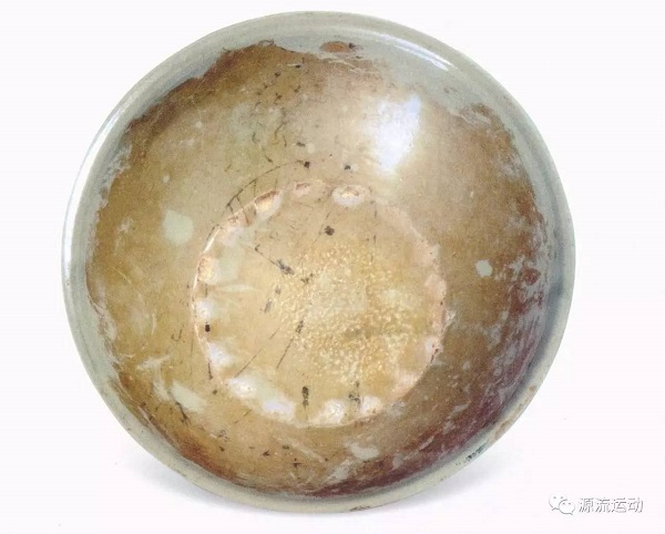 鎏金銀棱平脫雀鳥團(tuán)花紋秘色瓷碗外壁及底部