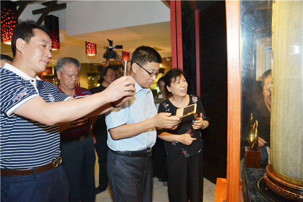 紫荊網(wǎng)(記者 張 娜)6月13日廣州電:“2017品鑒嶺南——中國著名作家廣東行”汕頭采風團一行,9日在汕頭主辦機構(gòu)帶領(lǐng)下參觀了潮汕非物質(zhì)文化遺產(chǎn)“陶瓷微書”——國寶級別的王芝文陶瓷微書藝術(shù)館,精妙的陶瓷微書藝術(shù)和潮汕文化傳承讓作家們興奮不已。對于“鎮(zhèn)館之寶”——入選“吉尼斯紀錄”、歷時7年創(chuàng)作燒制、需借助高清專業(yè)放大鏡才能看清上書共三十多萬字的陶瓷微書作品《三國志》,作家們更是驚呼“嘆為觀止”!