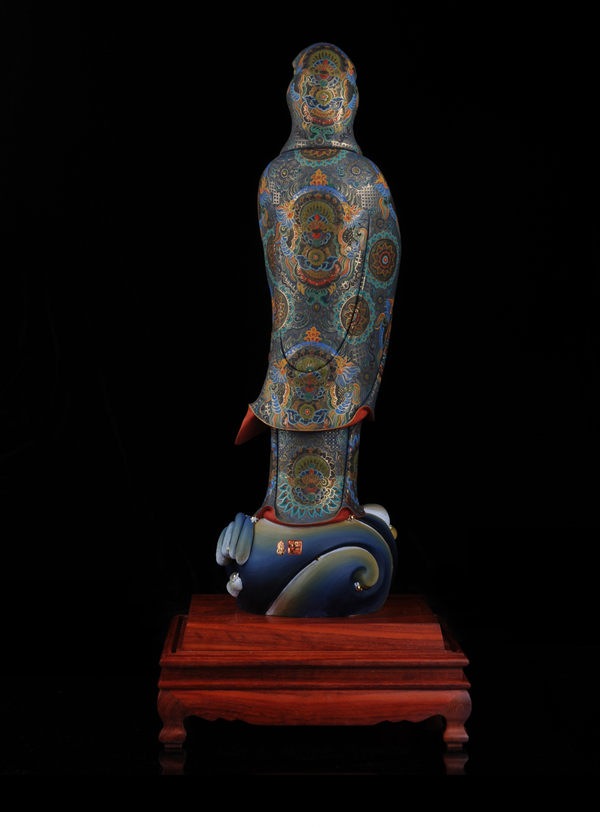 作品《立鰲觀音》繼承德化“何派”傳統(tǒng)加以創(chuàng)新的雕刻手法,精雕細(xì)刻,把觀音踏鰲巡海,漂浮于大海波濤之中,線條流暢,衣紋自然、飄逸,溫潤如玉,更展現(xiàn)其純凈、高雅的“東方女神”之魅力。