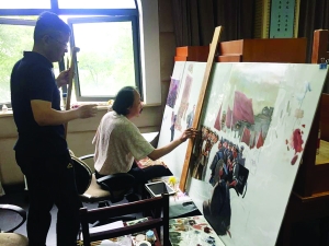 畫家正在創(chuàng)作大瓷板畫《八一南昌起義》