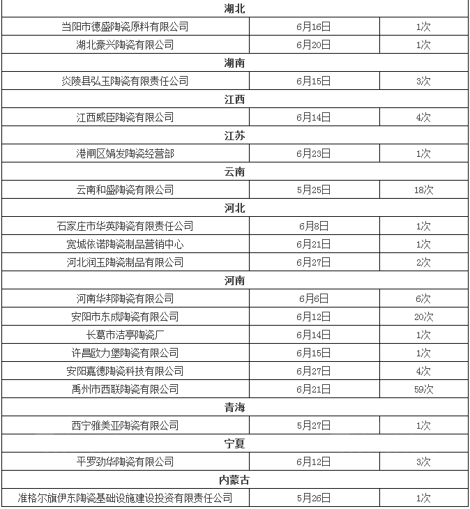 7月1日,記者根據(jù)最高人民法院及各地法院發(fā)布的失信被執(zhí)行人信息,統(tǒng)計(jì)了5月11日—6月30日這51天內(nèi)全國(guó)各地被列入“失信被執(zhí)行人”的陶企,14個(gè)省份的30余家陶瓷企業(yè)被列入了“老賴(lài)”名單。