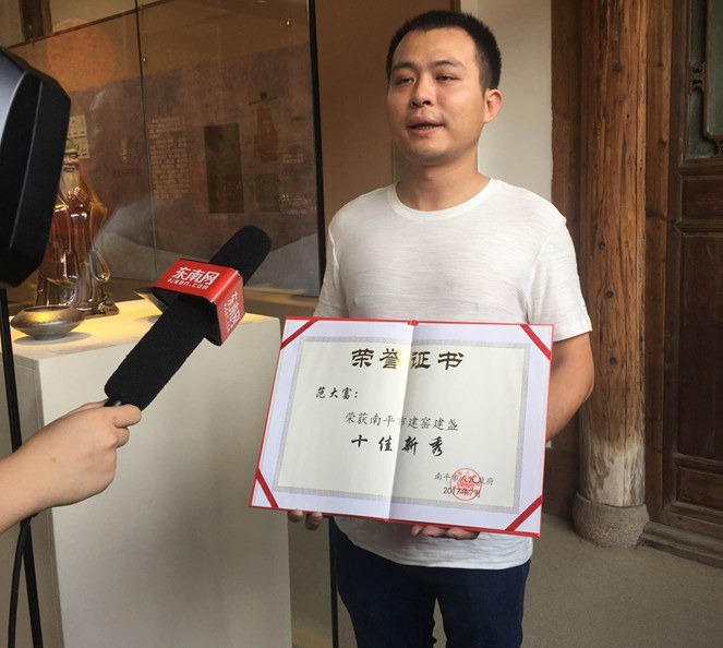 獲得“十佳新秀”的憬峰建盞陶瓷研究所的范大富在采訪中說:“2014年開始研究燒制建窯建盞,能夠獲得“十佳新秀”的稱號是對我們傳統(tǒng)手工制作的肯定,為我們建窯建盞技藝的新人提供更多展示技藝的平臺。”范大富的建盞作品曾參加過海峽兩岸(廈門)文化產(chǎn)業(yè)博覽會、中國(深圳)國際文化產(chǎn)業(yè)博覽會等活動并獲獎。范大富也是獲得本次建窯建盞“十佳新秀”榮譽稱號中年齡最小的一位。