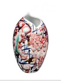 陶瓷藝術(shù)創(chuàng)作中,傳統(tǒng)的“釉里紅”往往因為原料的屬性而趨向單一色相,甚至難成理想之成色,陶瓷藝術(shù)家們大都忌諱使用。但在章建強的藝術(shù)生命中,只有想不到,沒有做不到,他潛心于"釉里紅"的研究,歷經(jīng)無數(shù)次實驗,最終在抽象油畫、平面構(gòu)成以及現(xiàn)代工藝之間,發(fā)現(xiàn)了屬于他自己的色彩空間,從此沉浸在他的“章式”迷醉里無法自拔。