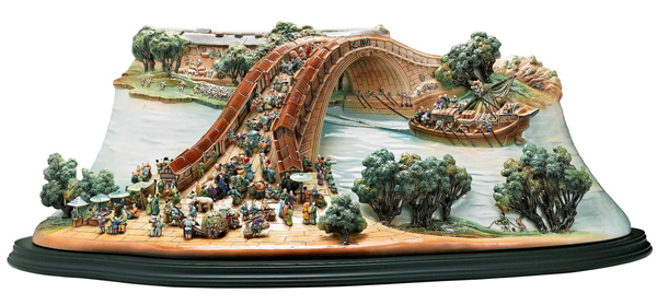 據(jù)了解,臺(tái)灣法藍(lán)瓷此次還展出了一部分深具中華文化特色的典藏藝術(shù)品。其中以“清明上河圖”為靈感創(chuàng)作的藝術(shù)品,設(shè)計(jì)師集“清明上河圖”各版本之大成,選取畫卷中后段最為典型的“虹橋”片段,以畫作中的208人作為主角。透過二次設(shè)計(jì),讓畫作躍然于瓷上,再現(xiàn)經(jīng)典風(fēng)華。“八駿奔騰”則以“八駿馬”為造型,設(shè)計(jì)出新一代的3D瓷藝經(jīng)典珍藏品,八匹駿馬躍然而出,馳騁于峻嶺間,重新賦予中華文化典故新的生命力。“青蛙王子美夢(mèng)成真”則讓法藍(lán)瓷首開瓷藝新探險(xiǎn),富含童趣與想象力的青蛙王子,帶來永不褪色的祝福,打造出生活中時(shí)尚、新奇和有趣的幸運(yùn)。這些作品透過中西美學(xué)融合的精巧瓷藝,凸顯中華瓷藝作為現(xiàn)代新絲路文明交流的象征性意義。