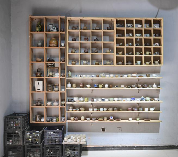 陶坊屋內(nèi)的儲(chǔ)物架上擺滿了呂錫良的陶瓷制品(8月1日攝)。 新華社記者 邵瑞攝