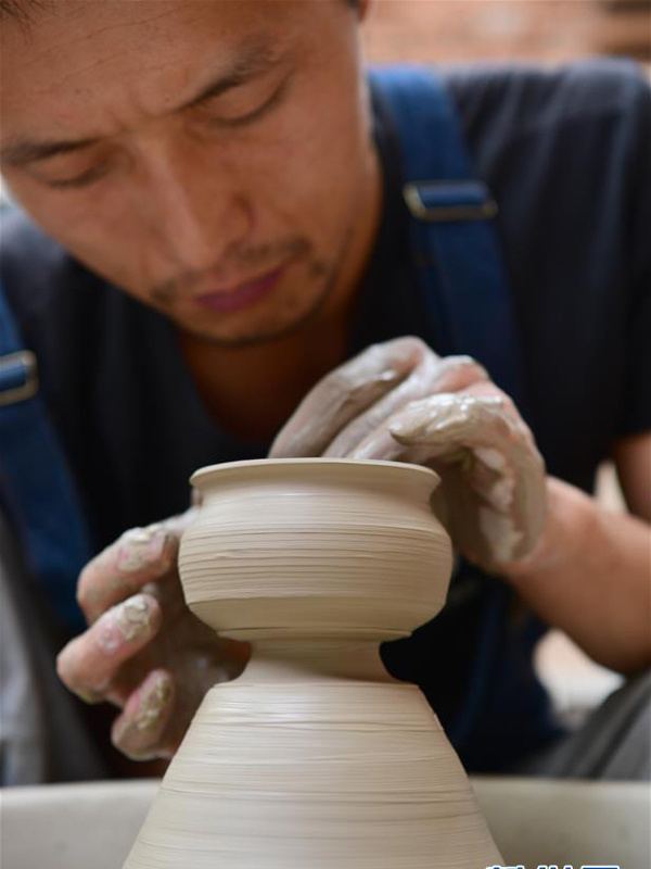 呂錫良在進(jìn)行拉坯(8月1日攝)。 新華社記者 邵瑞攝