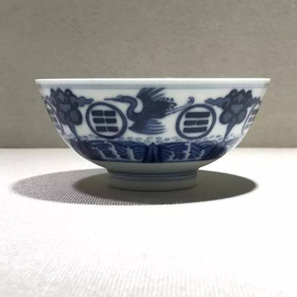 青花八卦云鶴紋碗為清代官窯傳統(tǒng)品種,創(chuàng)燒于清代雍正時期。碗心紋飾有海水、龍紋之分別,其中以繪龍紋者較為少見。