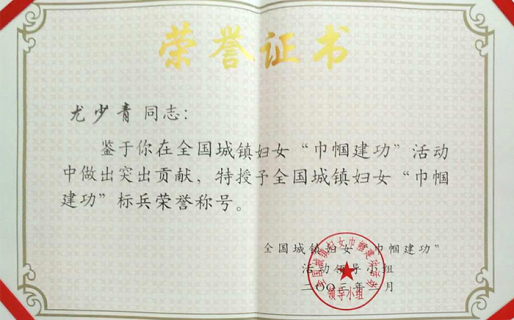 尤少青被省婦聯(lián)評(píng)選為“下崗女職工再創(chuàng)業(yè)”標(biāo)兵