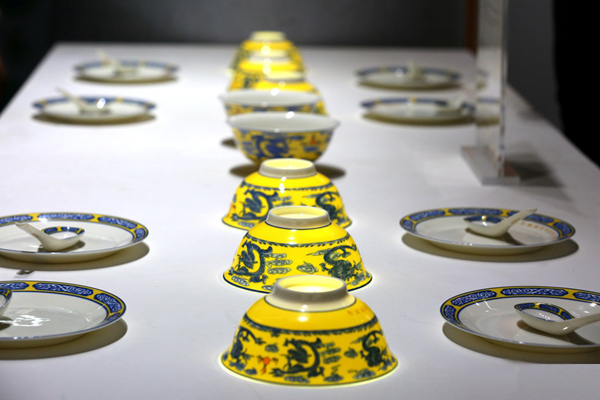 瓷器不僅圖案精美,工藝也登峰造極。燈光透過碗底顯得朦朧。