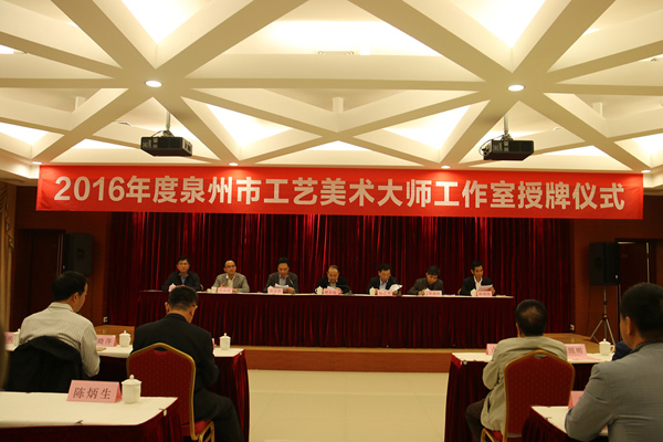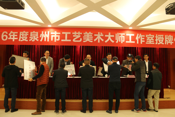 泉州市舉行2016年度工藝美術(shù)大師工作室授牌儀式,向30名在泉州產(chǎn)業(yè)中極具代表性的領(lǐng)銜大師授牌成立工藝大師工作室。