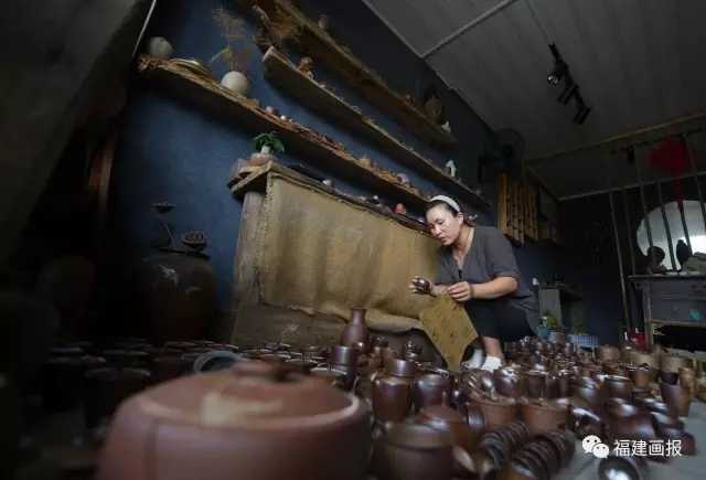 曉德陶藝坊內(nèi)琳瑯滿目的陶瓷茶具
