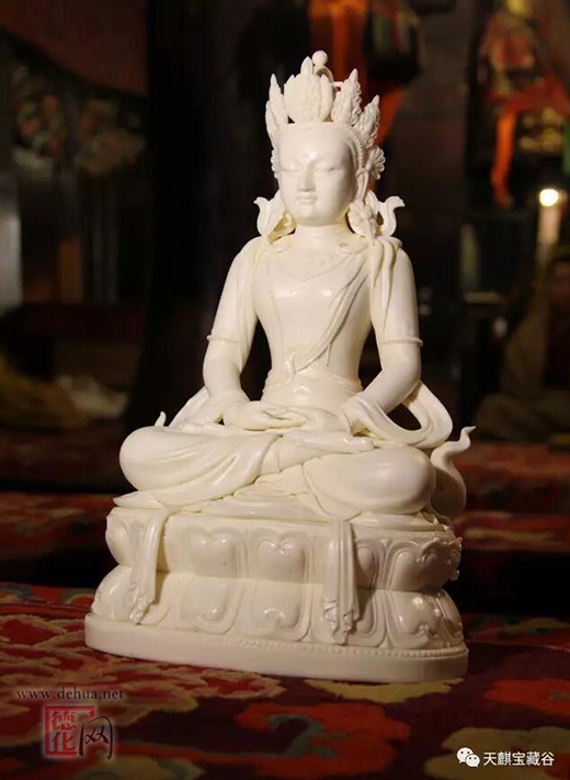 班禪大師接見(jiàn)了參加活動(dòng)的相關(guān)人員,并為大家摩頂祝福贈(zèng)送哈達(dá)。德化縣人大副主任鄭榮尊代表德化政府贈(zèng)送畫(huà)冊(cè)宣傳頁(yè),向大師仔細(xì)介紹了德化白瓷的歷史和現(xiàn)今發(fā)展情況,以及在本月剛剛結(jié)束的舉世矚目的廈門(mén)金磚會(huì)晤中,德化白瓷國(guó)禮以及無(wú)處不在德化陶瓷元素,并代表德化縣政府邀請(qǐng)大師蒞臨德化參觀視察指導(dǎo)。班禪大師仔細(xì)聆聽(tīng)了介紹,給予了肯定。大師在詳細(xì)的觀看了捐獻(xiàn)的瓷質(zhì)佛像,與以天麒投資藝術(shù)總監(jiān)蔡志奇為代表的主創(chuàng)團(tuán)隊(duì)進(jìn)行座談,了解造像的制作工藝流程,詢(xún)問(wèn)了造像的成本、銷(xiāo)售環(huán)節(jié),聽(tīng)取了主創(chuàng)團(tuán)隊(duì)的回答和介紹。班禪大師對(duì)本次捐獻(xiàn)的白瓷類(lèi)佛像及瓷器用品給予了高度的評(píng)價(jià),對(duì)捐贈(zèng)表示感謝,充分肯定了寶藏谷團(tuán)隊(duì)制作的藏傳佛像:“度量精準(zhǔn),工藝精湛,造像精美”。勉勵(lì)大家再接再厲,繼續(xù)制作創(chuàng)造高工藝高水平的瓷質(zhì)佛像及瓷類(lèi)用品。最后班禪大師說(shuō):“我會(huì)為你們祝福”。捐贈(zèng)活動(dòng)在熱烈喜慶的氣氛中結(jié)束。