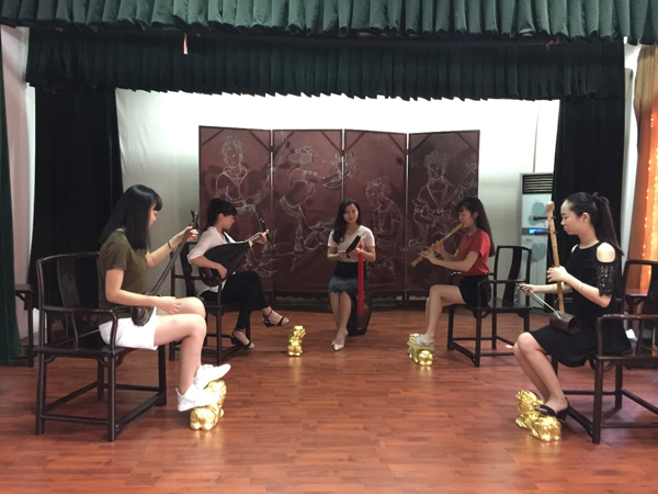 (南音專業(yè)的學(xué)生在排練,腳踩金獅)