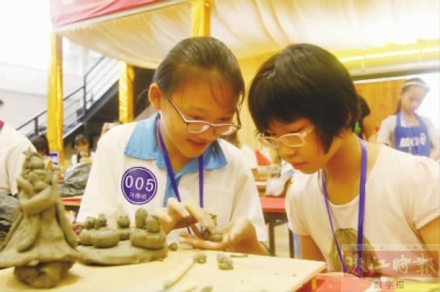 在專業(yè)組現(xiàn)場,中國陶瓷藝術大師黃志偉的徒弟肖檢正在一絲不茍地用手指捏出人物身上的肋骨。他創(chuàng)作的作品是《悟道》——正在思考中的達摩。“做陶瓷人物是比較考驗人的,要充分地運用細節(jié)表現(xiàn)人物豐富的表情,這很能體現(xiàn)陶藝師的水平。”肖檢說,他創(chuàng)作的這個作品,不僅要讓大家看到一個活靈活現(xiàn)的達摩,還要呈現(xiàn)出一種滄桑感,讓人感覺到這是個經受了很多苦難的達摩。