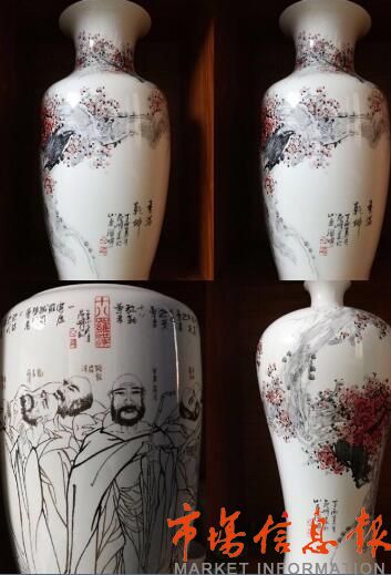 呂峰陶瓷代表作有:“金陵十二釵”系列20時“蝶夢”、刻瓷盤、“百蝶爭艷”、手彩瓶等,深受收藏家們的喜愛;其作品以細膩見長,追求淡雅氣質與精細刻畫相結合的創(chuàng)作風格。他在刀法運用、用筆作色上不取俗艷以趨時,大膽創(chuàng)新,形成了他自己的創(chuàng)作風格。