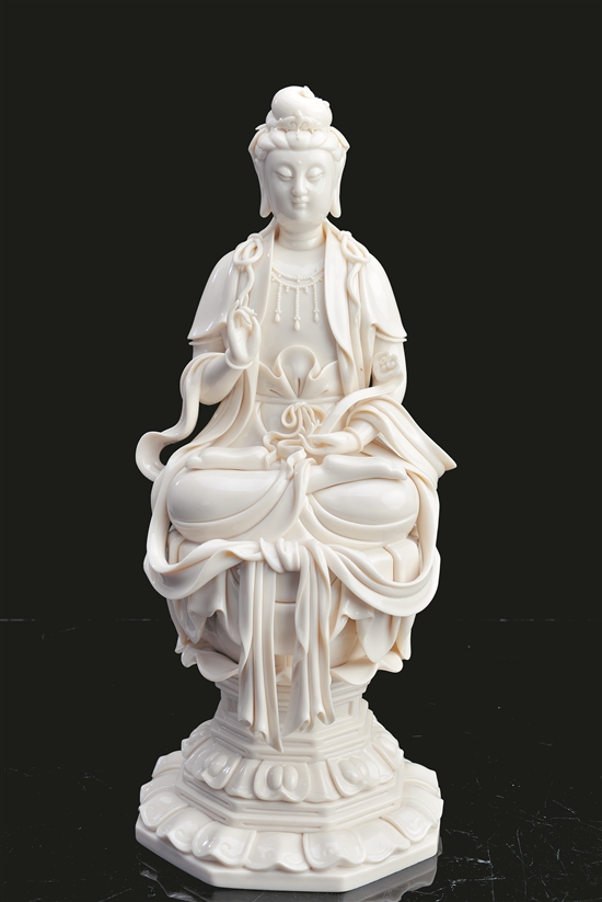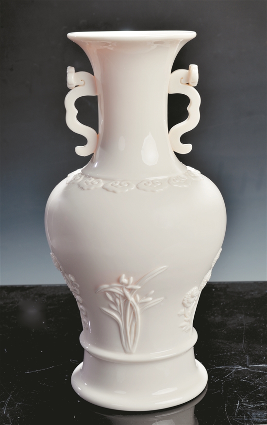 通過對古瓷的收藏研究,陳明良也形成了自己獨特的風格。“蒲團觀音”、“千年窯火”、“水月觀音”、“佛光普照”、“文昌帝君”等一些系列作品都是他的杰作。同時,他再現(xiàn)了“象牙白”“玉白”“豬油白”“蔥根白”“孩兒紅”等珍瓷,加上活靈活現(xiàn)的刻畫雕塑,使作品幾近完美無瑕,達到爐火純青的境界。
