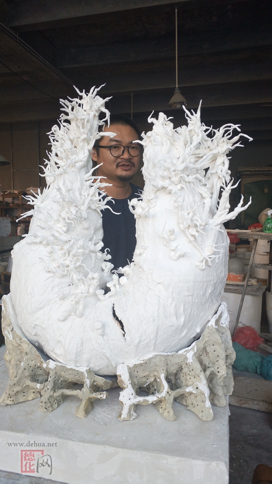 在德化進(jìn)行陶瓷創(chuàng)作已近八年的黃永星,是此次大賽的優(yōu)秀獎(jiǎng)獲得者。對(duì)于何朝宗作品的喜愛(ài),促成了他此次獲獎(jiǎng)作品《何朝宗》的出現(xiàn)。