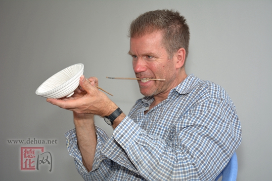 “惜土如金”是此次在德化駐地創(chuàng)作3個(gè)多月的美國(guó)藝術(shù)家馬克?路佛德(Marc Leuthold)留給本地陶瓷藝術(shù)家顏松柳的一大印象。除了對(duì)瓷土呵護(hù)有加,這些駐扎德化創(chuàng)作的國(guó)外陶藝家們的創(chuàng)作激情、工作態(tài)度和對(duì)陶瓷藝術(shù)的獨(dú)特理解,也讓顏松柳印象深刻。在與駐地外國(guó)藝術(shù)家的接觸中,他發(fā)現(xiàn),也許是平時(shí)創(chuàng)作時(shí)較少接觸德化白瓷,包括馬克在內(nèi)的不少駐地外國(guó)藝術(shù)家,都對(duì)于這一特殊質(zhì)地的瓷土倍加珍惜。“看過(guò)馬克的創(chuàng)作,會(huì)發(fā)現(xiàn)他很注重自然細(xì)節(jié)、也懂得保留、運(yùn)用瓷土所具有的天然美感。”在顏松柳看來(lái),從這些駐扎在德化潛心創(chuàng)作的外國(guó)藝術(shù)家們的作品中,不僅可以看到德化白瓷特有的美感,也能夠發(fā)現(xiàn)許多有別傳統(tǒng)的現(xiàn)代、創(chuàng)新的元素,令人耳目一新。