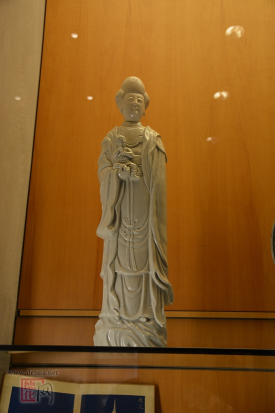 昂美術(shù)館陶瓷展廳展出的高達(dá)70公分的康熙德化外銷瓷——圣母瑪利亞,是基督教題材德化瓷的代表作品。(葉志向 攝)