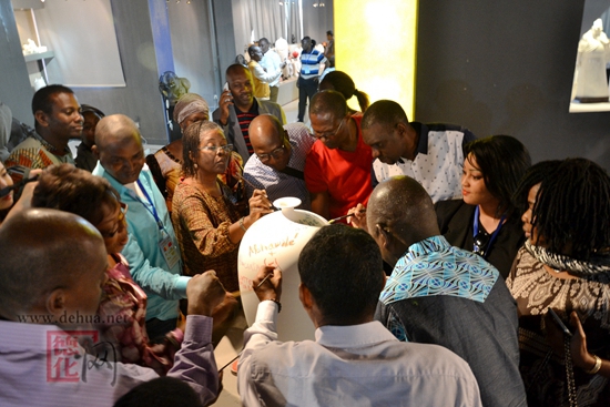 本報訊(記者 吳有森 通訊員 賴鋆)10月16日,我縣舉辦2017年第四期“海絲情·陶瓷韻”國際文化交流活動,14個國家40多位來自非洲法語國家投資與合作促進(jìn)研修班的學(xué)員到我縣的泉州工藝美術(shù)學(xué)院學(xué)習(xí)交流。研修班一行參觀了學(xué)院師生作品展,在白色陶瓷素坯上簽名留念,在實訓(xùn)工廠進(jìn)行手拉坯和陶泥體驗,了解陶瓷生產(chǎn)技能技藝。當(dāng)天,研修班一行還到順美陶瓷文化生活館參觀,進(jìn)一步感受我縣陶瓷文化的魅力。副縣長蔣文強(qiáng)參加活動。