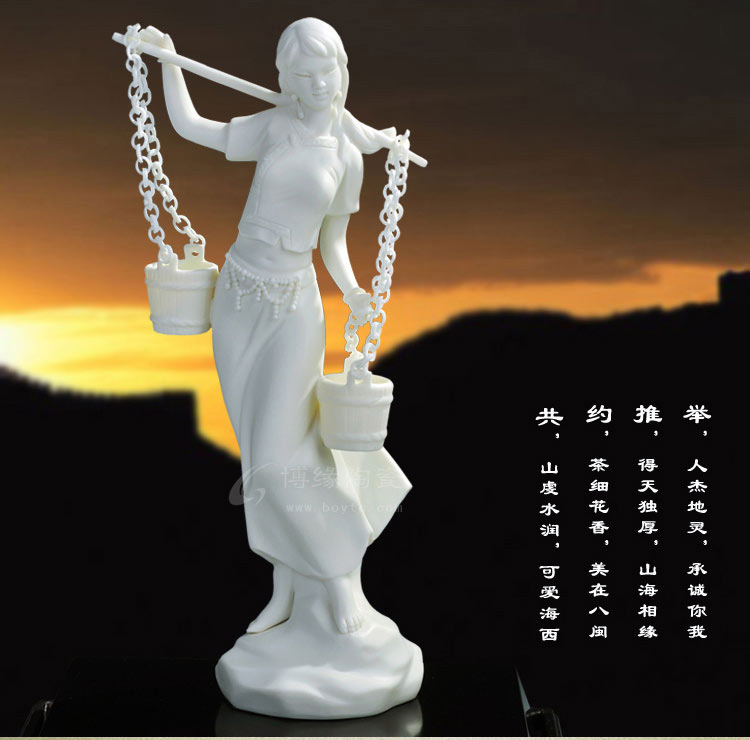 作品經(jīng)由工藝美術(shù)師親手設(shè)計創(chuàng)作,以德化溫潤如玉的建白瓷為胎體,精雕細刻,瓷質(zhì)潤如脂、晶瑩碧剔,表現(xiàn)少女的勤勞的品性,姿態(tài)婀娜,楚楚動人、造型線條流暢、情境與人物表現(xiàn)得生動而活潑,是辦公擺件、居家、禮品收藏瓷的上佳之選。