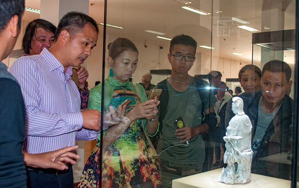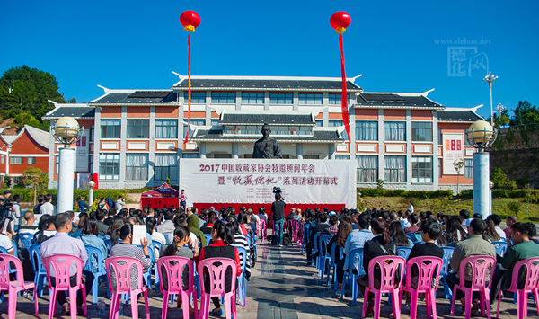 10月26日,2017中國(guó)收藏家協(xié)會(huì)特邀顧問座談會(huì)暨“收藏德化”系列活動(dòng)在德化縣召開。中國(guó)收藏家協(xié)會(huì)會(huì)長(zhǎng)羅伯健,武警工程學(xué)院原院長(zhǎng)何虎將軍,德化縣委書記梁玉華,德化縣委副書記陳金忠,德化縣政府副處級(jí)干部徐文福,中國(guó)收藏家協(xié)會(huì)、全國(guó)各省市收藏家協(xié)會(huì)的領(lǐng)導(dǎo)與嘉賓,德化縣陶瓷發(fā)展聯(lián)席會(huì)議成員單位領(lǐng)導(dǎo),來自全國(guó)各地的陶瓷收藏愛好者,德化部分大師新秀代表,以及新華社、中新社、中央電視臺(tái)、福建日?qǐng)?bào)、泉州晚報(bào)等20多家新聞媒體的記者們參加開幕式。開幕式上,中國(guó)收藏家協(xié)會(huì)發(fā)布“德化宣言”,啟動(dòng)“收藏德化”系列活動(dòng)。當(dāng)天,還舉辦2017“德化窯”歷代名家名瓷珍品展以及2017“中國(guó)白”德化陶瓷藝術(shù)精品展,10件海歸何朝宗款作品和15件歷代名家陶瓷精品、100名當(dāng)代藝術(shù)家的100件藝術(shù)精品集中亮相。