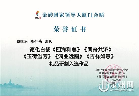 “很多人不知道德化瓷的發(fā)展走到了哪個(gè)階段,恰恰此次金磚會晤讓大家重新認(rèn)識德化瓷,原來德化瓷是這么高端典雅的。”陳仁海說,隨著人們生活水平的提高,對美好生活的追求更高,德化陶瓷藝人創(chuàng)作出這么美的作品,今后將慢慢走進(jìn)家庭,這就是“中國白”未來發(fā)展的趨勢。